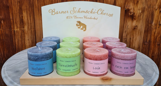 Bärner Schmöcki Cherzä mit neuen Kerzen "Häbs Guet" "Merci Tuusig" und "Nume nid Gschprängt"